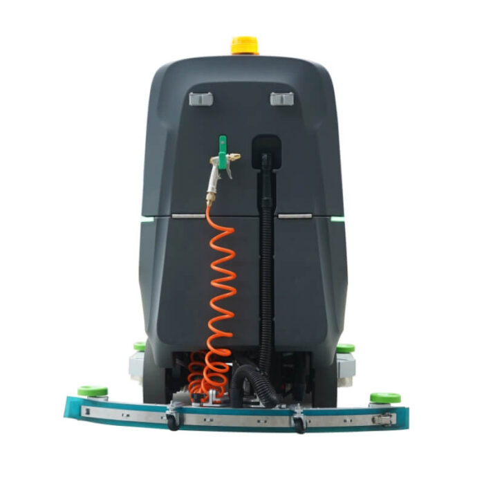 A floor scrubber uses a high-speed rotating brush to remove dirt from the floor. Simultaneously, a water suction system collects wastewater into a wastewater tank, achieving a "wash + vacuum + dry" three-in-one cleaning process, allowing for complete cleaning and drying in a single pass.